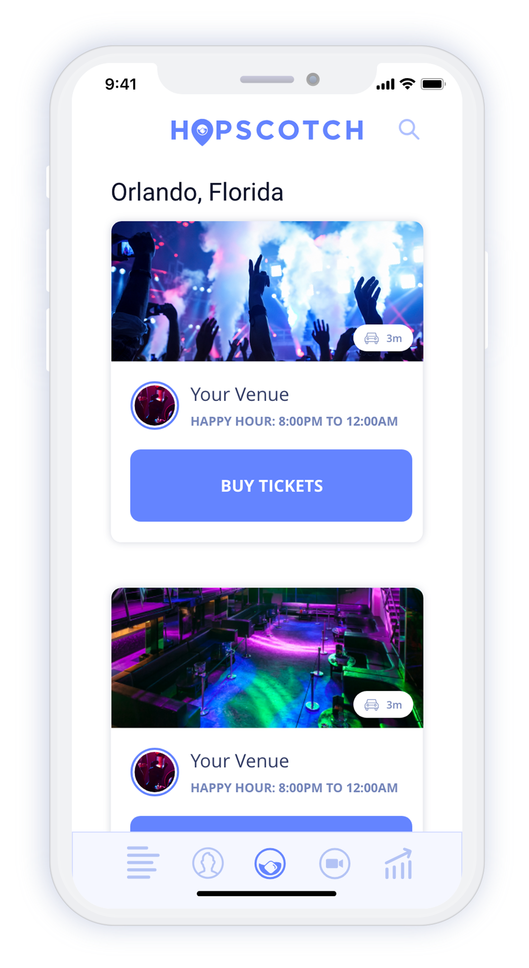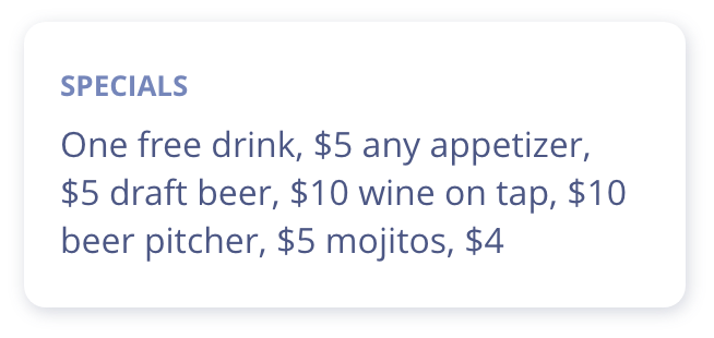 Hopscotch lists the drink specials of the night, gives you an opportunity to purchase admission, and more all in one place.
